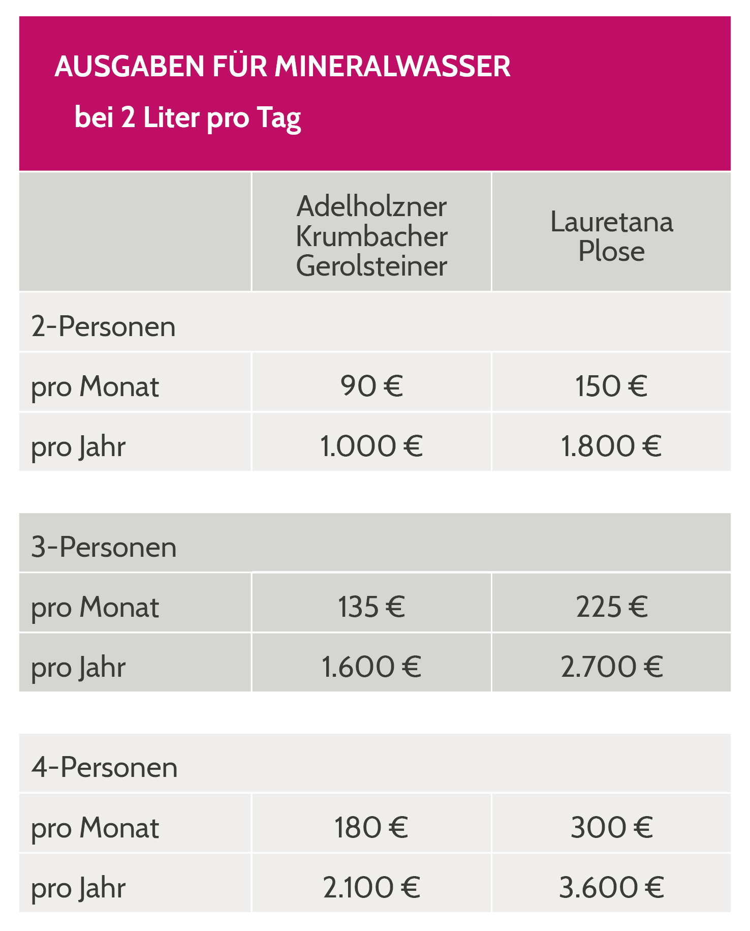 Das ist der Betrag den ein 4-Personen-Haushalt jeden Monat für den Kauf von Mineralwasser in Flaschen ausgibt.